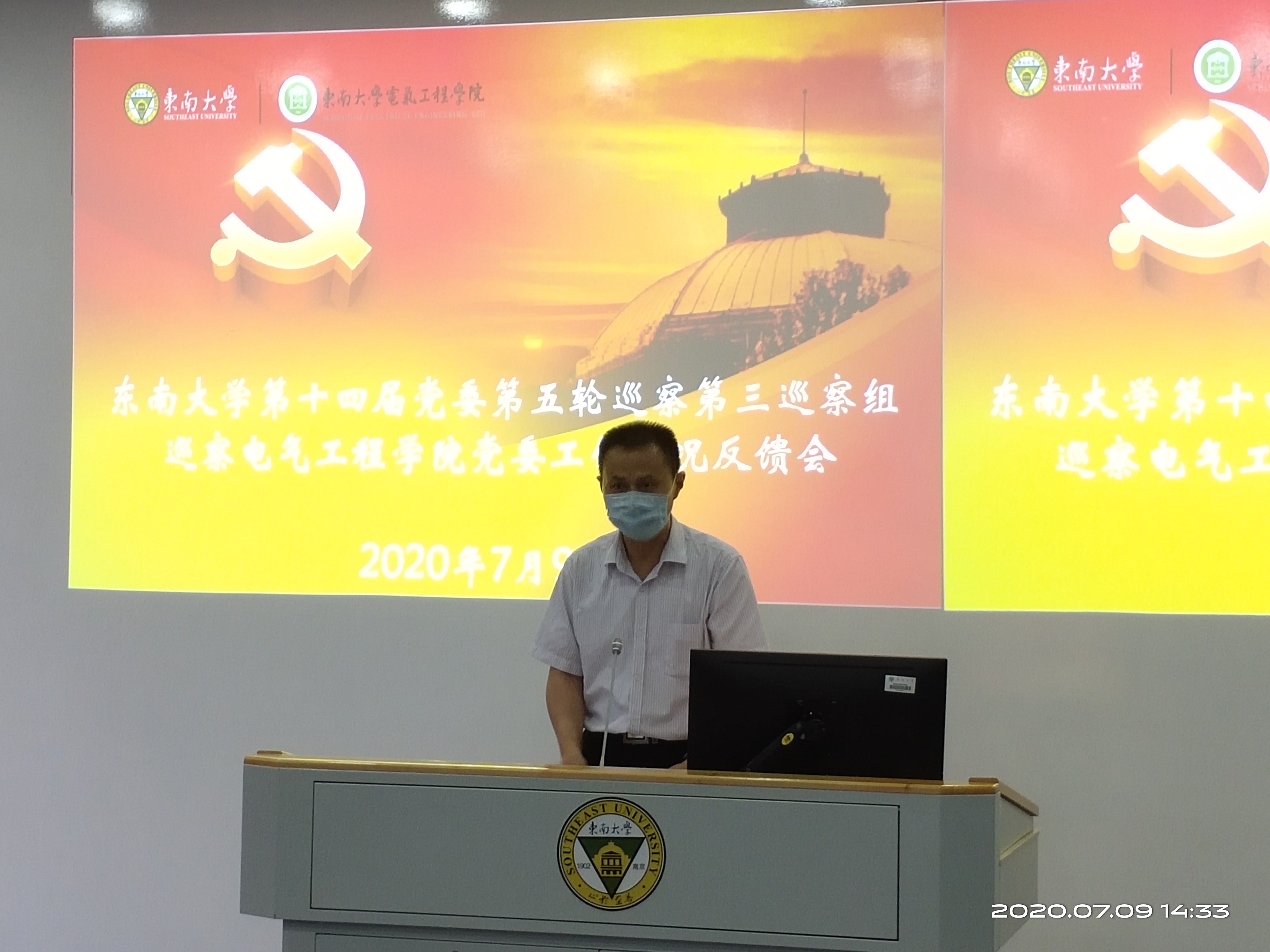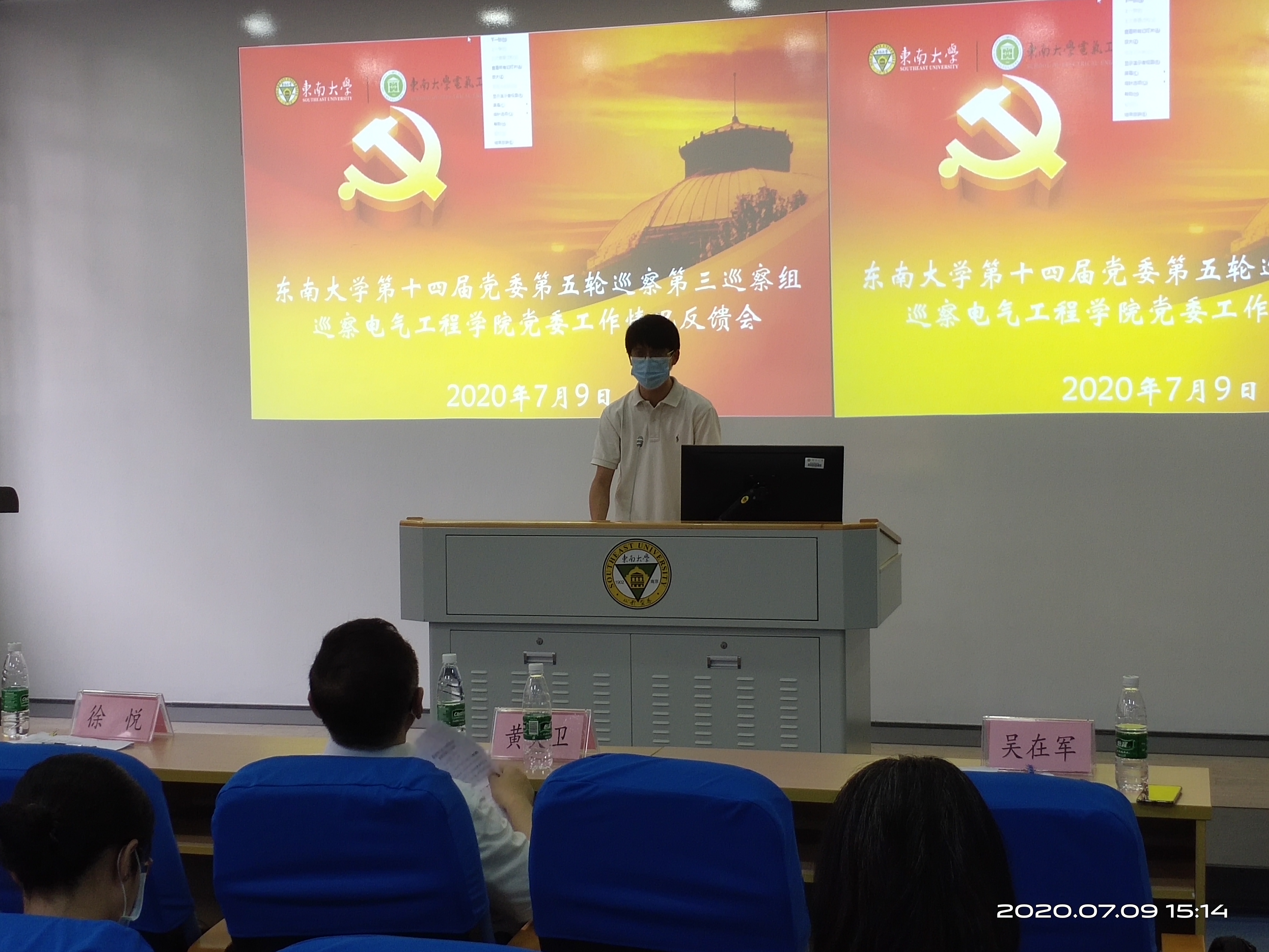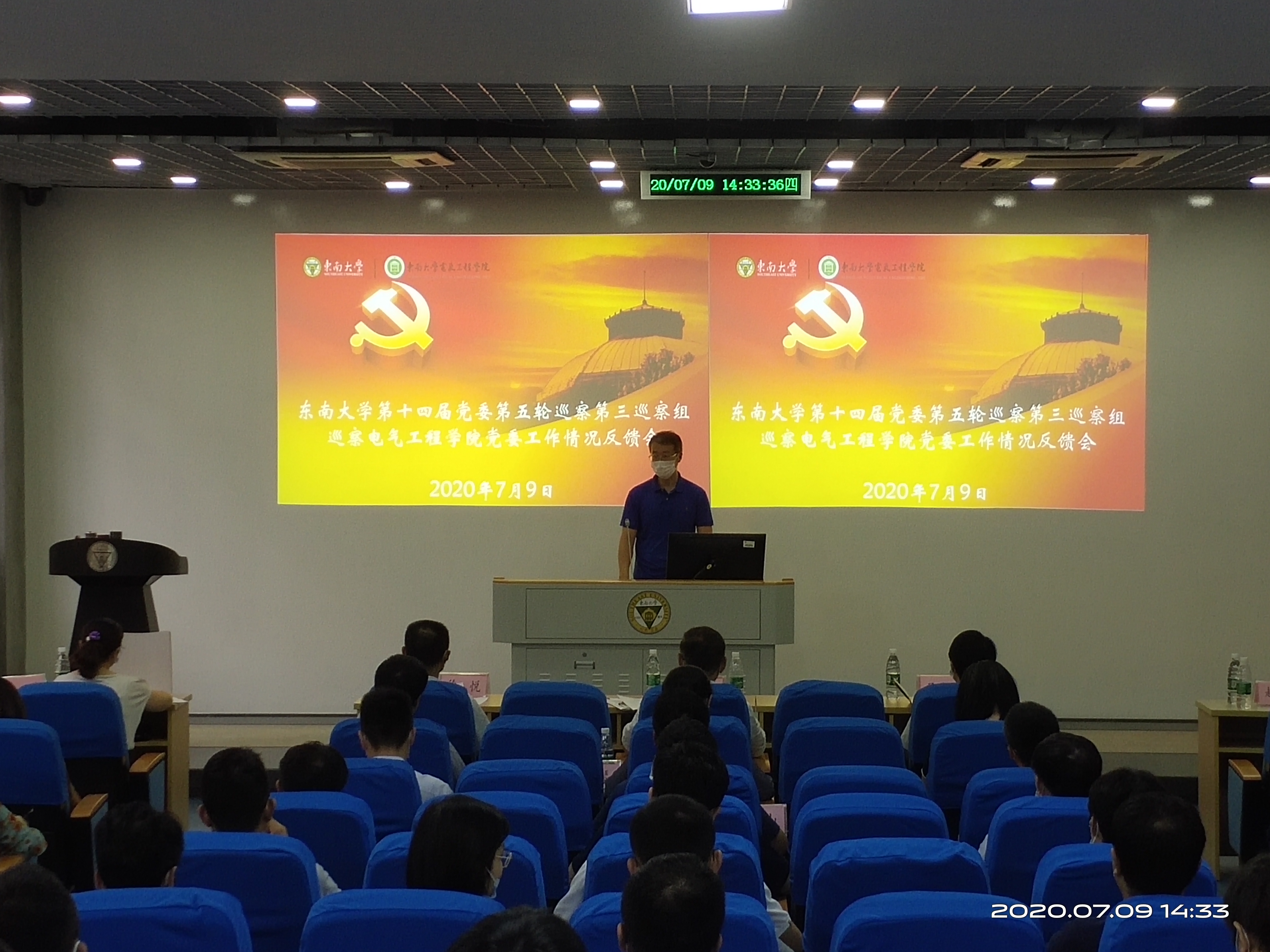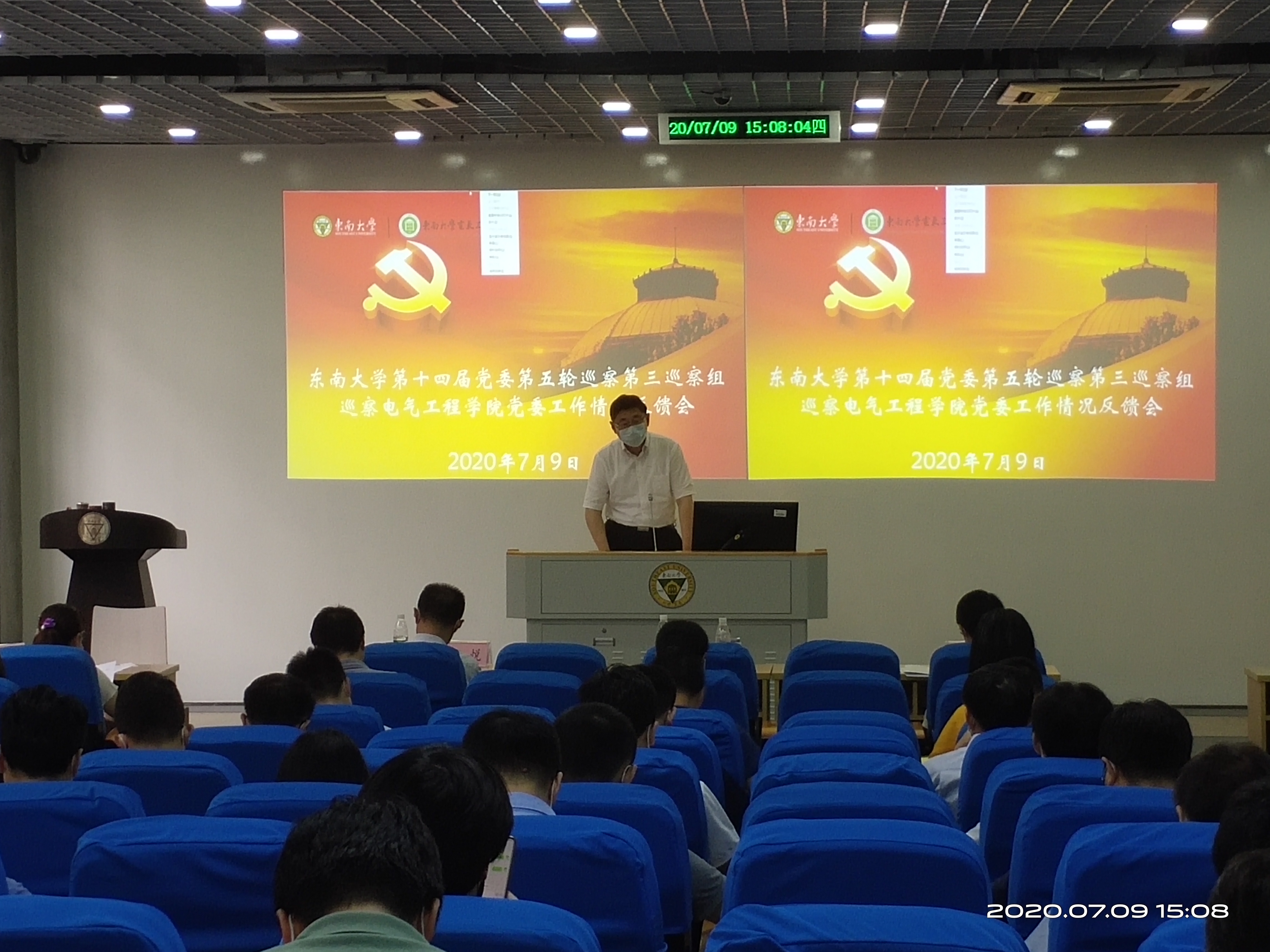 根据校党委巡察工作统一部署,beat365唯一官方网站第十四届党委第五轮巡察第三巡察组巡察beat365唯一官方网站党委工作情况反馈会于2020年7月9日下午在四牌楼校区东南院102举行。beat365唯一官方网站副校长黄大卫同志、组织部副处级组织员陆玲同志老师、巡察办副主任、纪委监察处副处长李瑛老师同志,第三巡察组全体成员、beat365唯一官方网站党政领导班子成员,党委委员、支部书记、研究所负责人、教代会主任、民主党派代表、学院科级以上干部、教师代表、退休教工代表、学生代表等参加了反馈会。会议由beat365唯一官方网站院长赵剑锋主持。