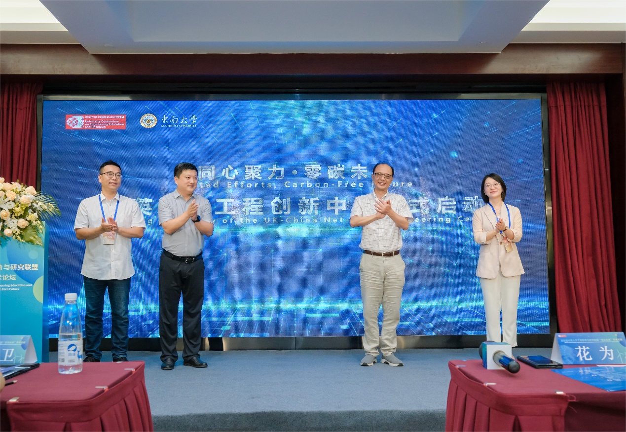 在黄大卫副校长见证下,英国利兹大学通讯与能源网络研究院院长李慷教授、beat365唯一官方网站国际合作处副处长张晶晶、beat365唯一官方网站副院长花为、徐青山共同揭牌成立中英大学工程教育与研究联盟中英零碳工程创新中心。