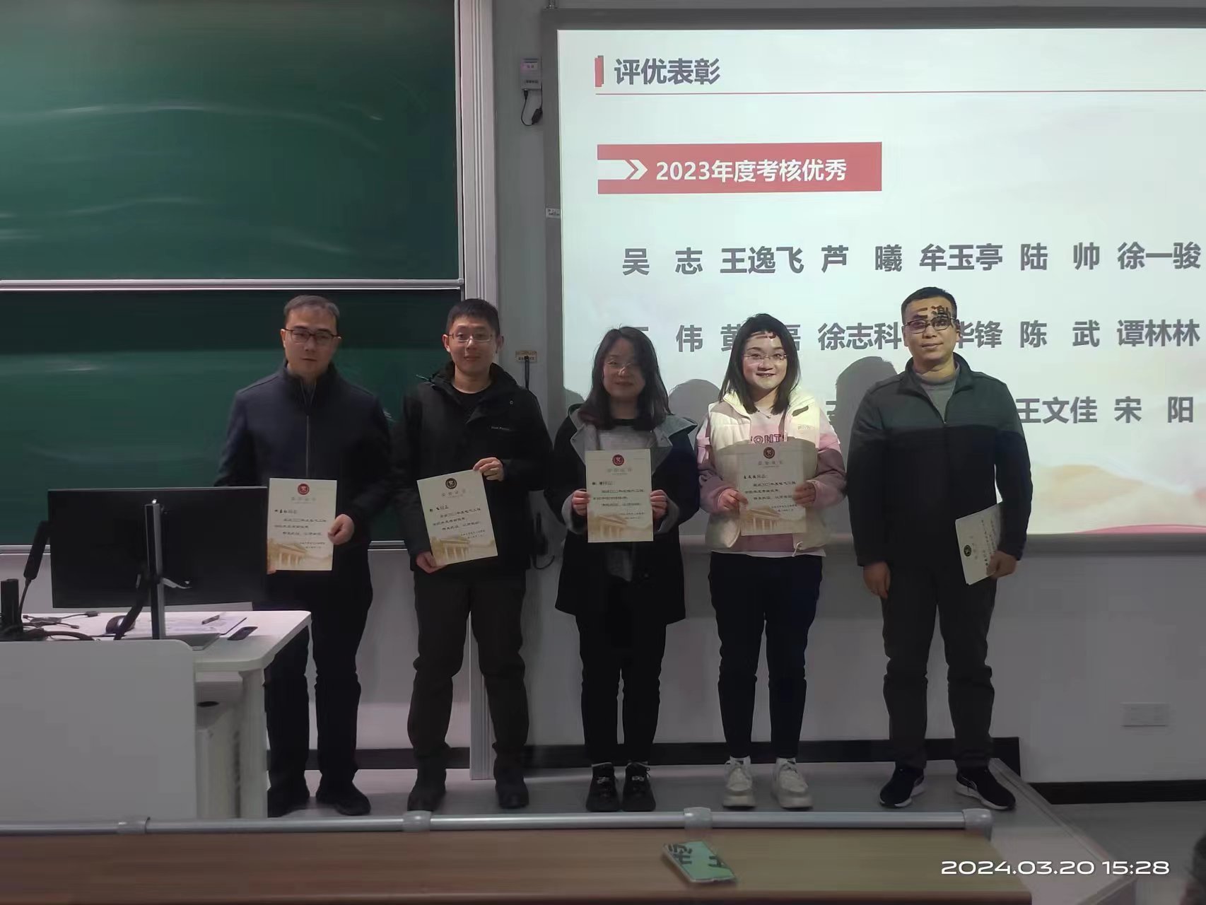 接着,举行2023年度评优表彰,学院领导班子给获得年度考核优秀、积分考核优秀、班主任考核优秀、先进基层党组织、优秀党务工作者的组织或个人颁发荣誉证书,向取得优异成绩受到表彰的教职工表示祝贺,向为学院发展付出辛勤劳动的教职工表示感谢。