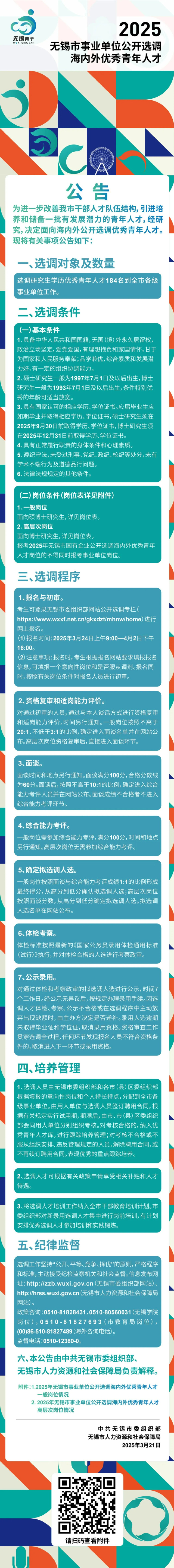2025年无锡市事业单位公开选调海内外优秀青年人才公告