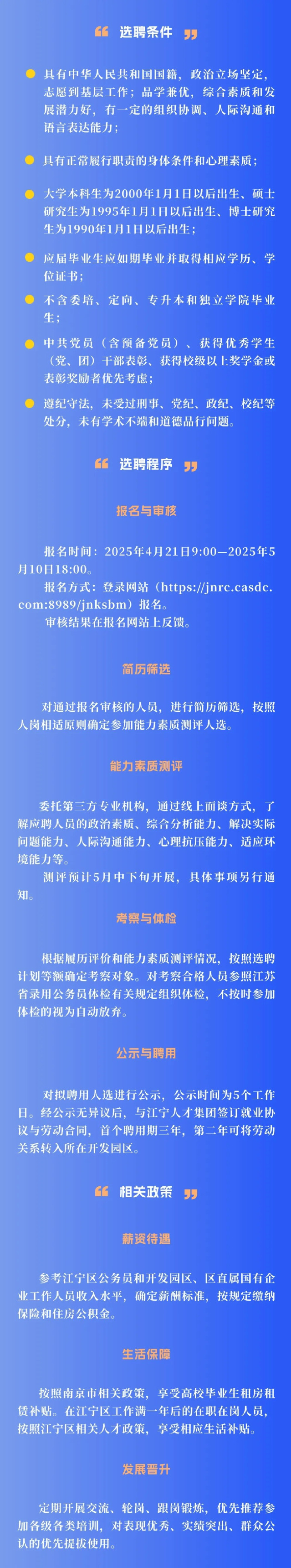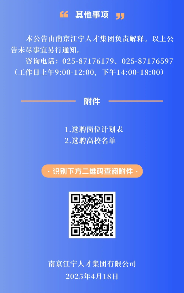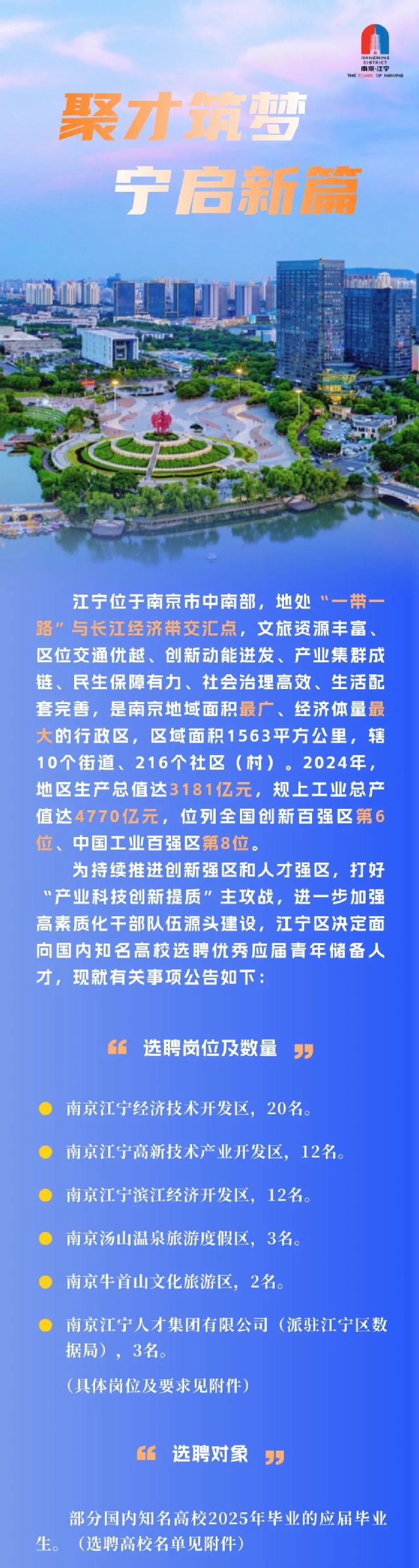 江宁定向选聘2025届优秀高校毕业生公告