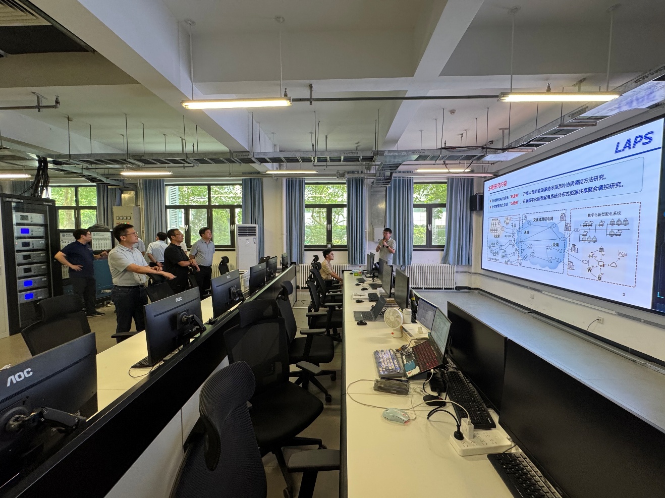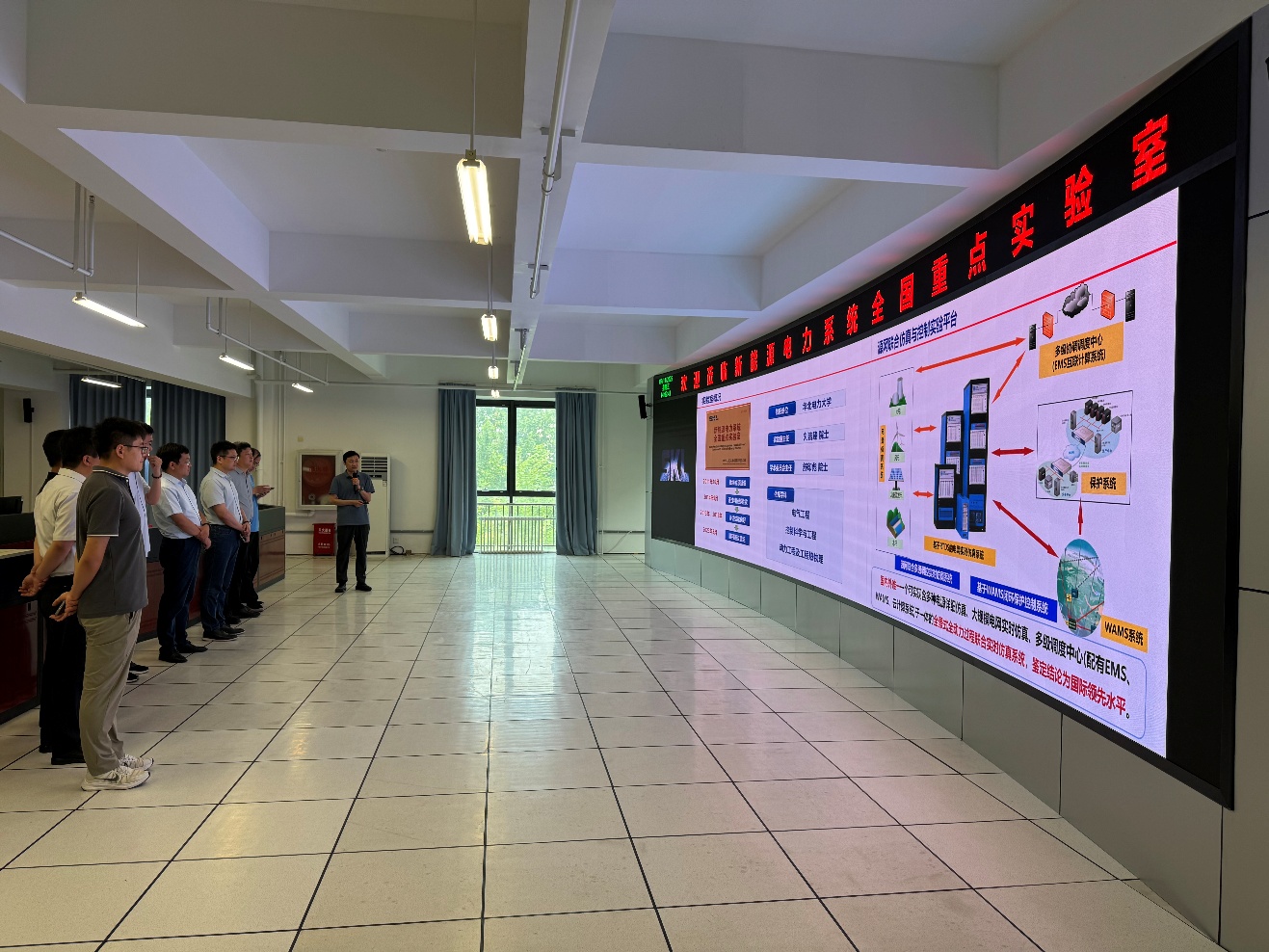 11日下午,学院一行来到华北电力大学,在电气学院齐磊副院长(主持工作)的带领下,参观了华北电力大学新能源电力系统全国重点实验室。彭跃辉副主任详细介绍了全重实验室的发展概况和建设亮点,并着重展示了实验室建成的源网联合仿真与控制实验平台以及近年来取得的代表性研究成果。随后,学院一行走访了几间代表性实验室,参观了华北电力大学源网荷全景同步测量系统和三峡乌兰察布风光储一体化智慧联合集控中心。