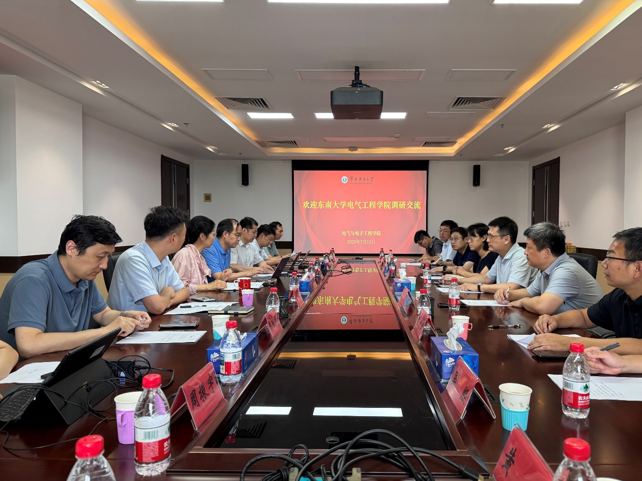 参观结束后,在电机系党委书记郑泽东的主持下,双方就党建工作、人才培养、学科建设、科研工作、学生工作等方面展开深入交流。