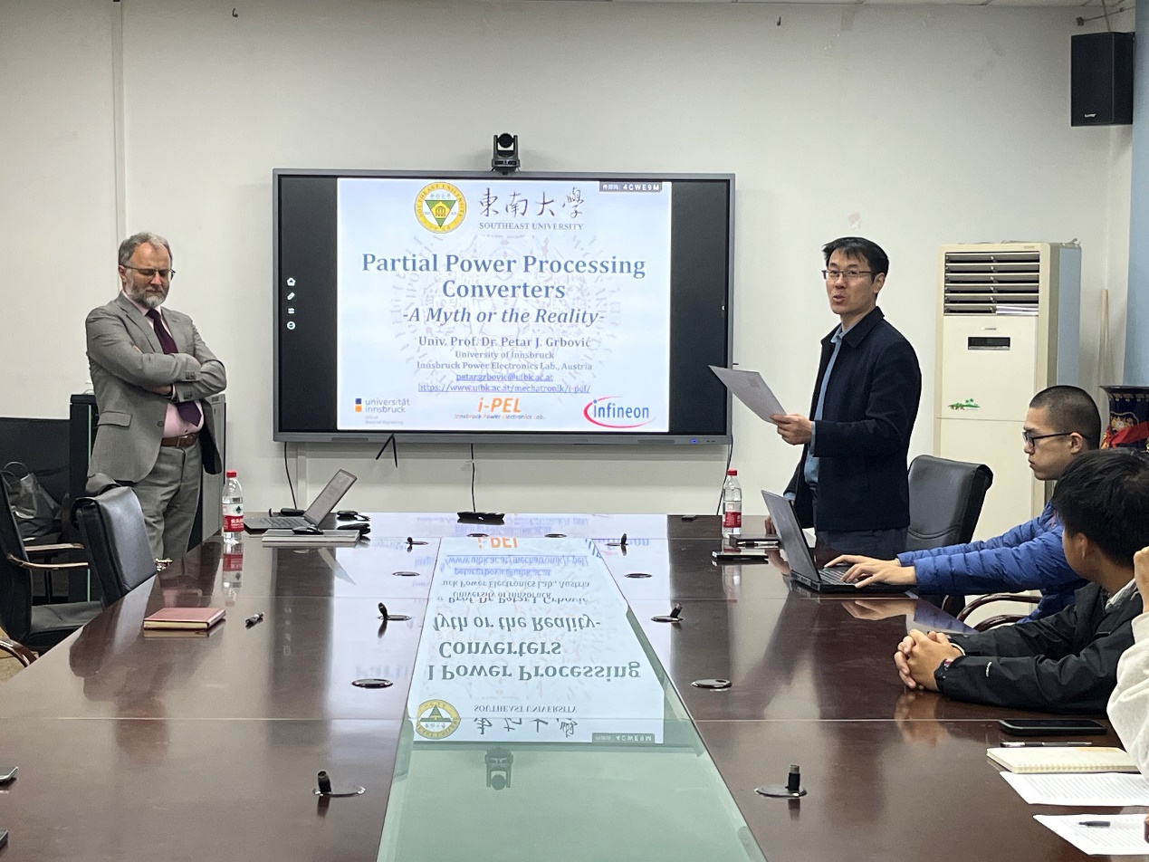2025年11月3日,奥地利因斯布鲁克大学电力电子研究室(i-PEL)首席教授Petar Grbovic应陈武教授邀请来访beat365唯一官方网站,并作题为《Partial Power Converters: -A Myth or the Reality》的学术报告。报告会由陈武教授主持,20余名师生参会,会议于beat365唯一官方网站动力楼318会议室进行。